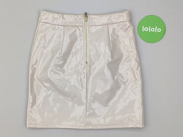 Satynowa spódniczka mini Sinsay - Rozmiar: XXS (z metki) - Kolor: kremowy/ecru - Krój: prosta mini, delikatnie dopasowana - Materiał: gładka, połyskująca tkanina o satynowym wykończeniu - Talia: e...
