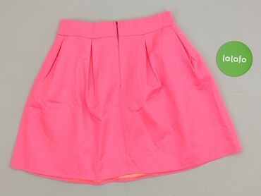 Różowa spódnica mini z podszewką - Krój: rozkloszowana, z marszczeniami przy pasie - Długość: mini - Kolor: malinowy róż z kontrastową, intensywnie różową podszewką wystającą subtelnie u dołu - Za...