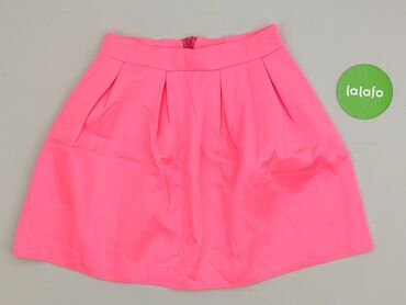 Spódnica mini w kolorze neonowej żółci. - Fason: rozkloszowany z zakładkami z przodu i z tyłu - Talia: wszyty pasek, zapięcie na suwak z tyłu - Długość: ok. 38–39 cm (na zdjęciu z miarką) - Materi...Stan: