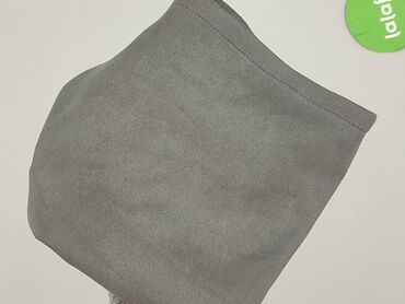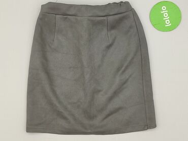 Szara spódnica mini z miękkiej tkaniny imitującej zamsz - Krój: prosta mini, lekko trapezowa - Talia: elastyczna gumka z marszczeniem; szlufki na pasek - Detale: dekoracyjne pionowe i poziome prze...