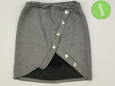 Dzianinowa spódnica mini w kolorze ciemnoszarym (melanż). - Krój: ołówkowy, z przodu ozdobne, skośne zakładki tworzące efekt koperty. - Talia: elastyczna gumka, bez zapięcia. - Materiał: miękka, e...