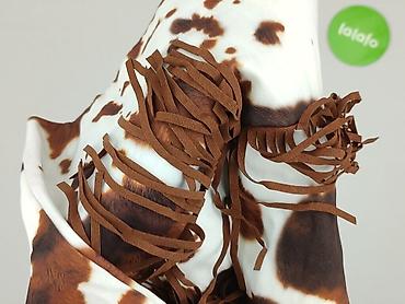 Dodatki: troczki przy frędzlach po bokach. Kolory i print nadają wyrazisty, kowbojski charakter. Idealna do botków, koszulki basic lub kurtki jeansowej.