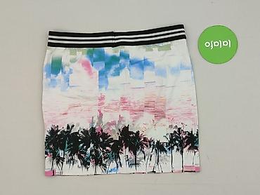 Spódnica damska mini PB Sister, rozmiar S - Krój: ołówkowy, dopasowany, mini - Wzór: tropikalny print – zielone liście i różowe kwiaty na miętowym tle - Tkanina: dzianina elastyczna (miękka, rozci...