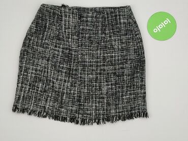 Spódnica mini PRIMARK z tkaniny typu tweed/bukla. - Krój: prosta, lekko w literę A, długość mini - Materiał: grubsza, teksturowana tkanina tweedowa z kolorową przędzą (czernie, biel, szarości, gra...