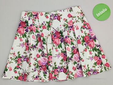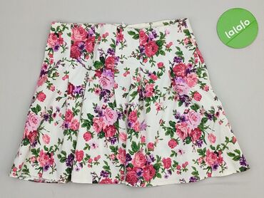 Rozkloszowana spódnica w kwiaty FB Sister (New Yorker) - Krój: lekko rozkloszowany, z zaszewkami/plisami z przodu i z tyłu, długość mini/przed kolano - Wzór: gęsty, kolorowy nadruk kwiatowy na cza...