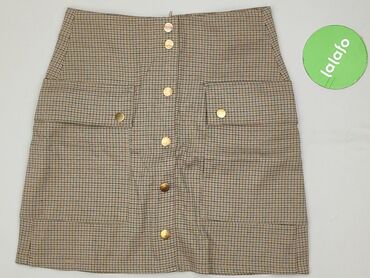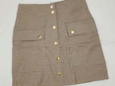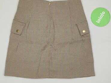 Spódnica Sinsay, rozmiar M - Krój: mini, lekko trapezowy - Zapięcie: rząd ozdobnych, złotych napów z przodu + zamek z tyłu - Wzór: drobna krata w odcieniach beżu i brązu - Kieszenie: dwie duże nas...