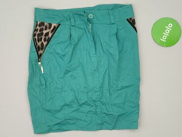 Turkusowa spódnica mini Pepperts - Kolor: intensywny turkus - Krój: mini, lekko rozkloszowany dół z szerokim pasem - Zapięcie: na suwak kryty i duży ozdobny guzik z przodu - Pasek: szlufki na pase...
