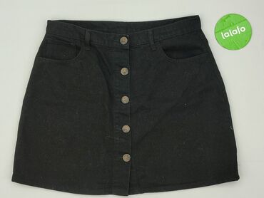 Czarna denimowa spódnica mini z guzikami z przodu. - Krój: A‑line/mini - Zapięcie: rząd metalowych napów z przodu - Kieszenie: 2 duże naszywane z przodu, 2 kieszenie z tyłu - Szlufki na pasek w pa...
