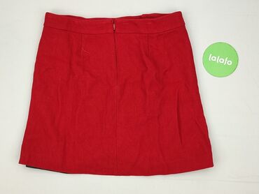 Czerwona spódnica mini z kontrafałdami i ozdobnym, asymetrycznym panelem zapinanym na guziki z przodu. - Krój: lekko rozkloszowany, talia średnia, gładki tył. - Detale: 5 złotych guzików z przodu...Stan: