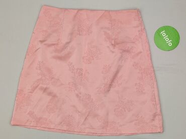 Różowa spódnica Sinsay, rozmiar L. - Krój: mini z falbaną u dołu, marszczenia z przodu i z tyłu modelujące sylwetkę. - Wzór: drobne, żółte kropki/kwiatuszki na różowym tle. - Tkanina: zewnętrzna 9...Stan: