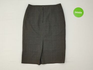 Spódnica ołówkowa z wełnianej tkaniny, grafitowy melanż. - Krój: klasyczny ołówkowy, długość do kolan. - Zapięcie: z przodu na suwak i guzik. - Rozcięcie: subtelny rozporek z przodu u dołu. - Tali...