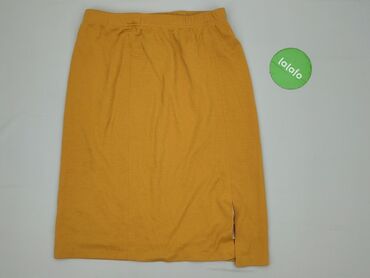 Żółta spódnica ołówkowa, rozmiar 38. - Fason: ołówkowy, za kolano - Talia: elastyczna gumka po bokach dla lepszego dopasowania - Zapięcie: zamek z tyłu - Rozcięcie: niewielkie, z tyłu u dołu - Tka...