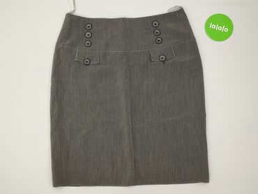 Szara spódnica ołówkowa w delikatny drobny prążek. - Fason: ołówkowy, długość przed kolano - Kolor/wzór: jasnoszary w cienkie, pionowe prążki - Zapięcie: z tyłu na kryty suwak i guzik - Detale: za...Stan: