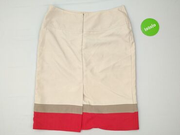 Spódnica ołówkowa w kolorze kremowym z delikatnym, pionowym melanżowym wzorem (drobne nitki w odcieniach niebieskiego i czerwonego). - Krój: klasyczny, prosta linia, długość do kolan. - Talia: ws...