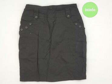 Spódnica ołówkowa w prążek - Krój: ołówkowy, sięgający nad kolano - Wzór: drobne, pionowe prążki (czarne z jasnoszarymi liniami) - Talia: szeroki pas z delikatnymi marszczeniami po bokach; szlufki...