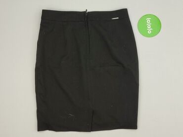 Czarna spódnica ołówkowa damska, rozmiar EU 38. - Krój: klasyczna ołówkowa, długość za kolano. - Stan: używana. - Kolor: czarny, gładki. - Talia: szeroki pas z dekoracyjnymi, poziomymi zakładkami p...