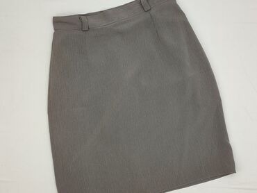 Spódnica ołówkowa w prążki - Kolor: szary z drobnym, jasnym prążkiem - Krój: ołówkowy, wysoki stan, długość do kolan - Rozmiar z metki: 46 - Zapięcie: kryty zamek z tyłu - Tył: rozcięcie u dołu dl...