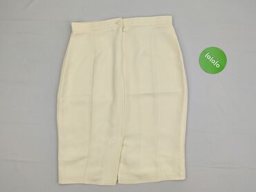 Damska spódnica ołówkowa w kolorze kremowym/ecru. - Krój: ołówkowy, z delikatnymi zaszewkami z przodu - Długość: za kolano (midi) - Pas: wszyty pasek; zapięcie z tyłu na suwak i guzik - Materiał: ...