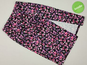 Spódnica damska w kwiaty - Fason: ołówkowy, midi/tuż przed kolano - Wzór: gęsty, kolorowy nadruk kwiatowy (odcienie fuksji, fioletu, bieli, zieleni) - Pas: elastyczna, szeroka guma w kolorze czarn...