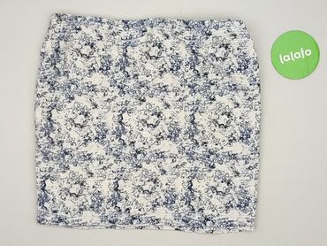 Spódnica damska Pepco, rozmiar M. - Fason: ołówkowy, sięgający przed kolano - Wzór: biało-granatowy, kwiatowo-abstrakcyjny nadruk - Tkanina: elastyczna dzianina z widoczną fakturą/ryflowaniem - Sk...