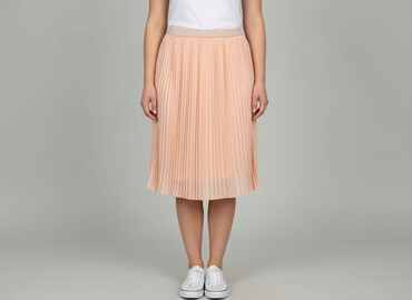 Spódnica Waggon Paris - Model: MC 269003 - Rozmiar: XL (z tyłu szeroka, elastyczna guma w pasie) - Kolor: różowy - Materiał: 100% poliester (lekka, zwiewna tkanina) - Krój: długi/za kolano, plisow...