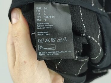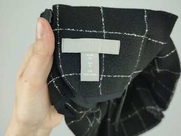 Czarna spódnica midi marki H&M o długości do kolan, wykonana z mieszanki poliestru i poliamidu z metalicznymi włóknami, co nadaje jej delikatny połysk. Spódnica charakteryzuje się rozkloszowanym fa...