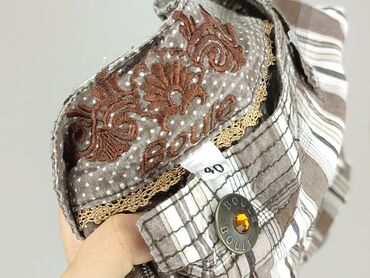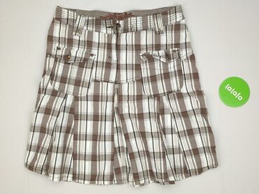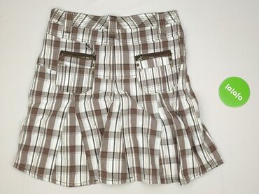 Brązowa spódnica o fasonie bombki z szerokim, kontrastowym pasem. - Kolor: głęboki brąz; pas w odcieniach beżu z delikatnym, kratkowanym wzorem - Krój: luźny, balonowy (bombka) z zakładkami, delik...