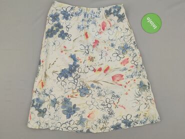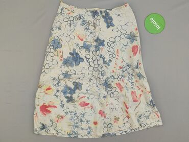 Spódnica damska MARGO - Rozmiar: 36 (z metki) - Materiał: 100% len - Kolor bazowy: ecru/śmietankowy - Wzór: haftowane kwiaty w odcieniach lawendy i zieleni, połączone falującymi liniami - Krój: le...