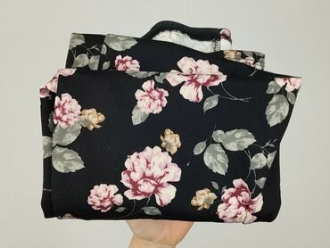Damska spódnica ołówkowa z elastycznej dzianiny - Wzór: duże, szkicowane kwiaty w jasnoróżowym kolorze na czarnym tle - Krój: klasyczny, dopasowany, długość przed kolano - Pas: elastyczny, bez zapi...Stan: