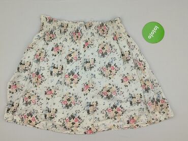 Spódnica damska z kwiatowym printem - Krój: krótka/spódnica mini, lekko rozkloszowana - Talia: elastyczna gumka, wygodne dopasowanie - Wzór: duże kwiaty w odcieniach brzoskwini, różu, kremu i beżu...Stan: