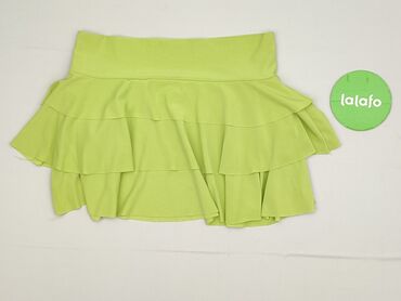 Zielona spódnica mini Sinsay dla kobiet - Rozmiar: XS (z metki) - Kolor: intensywna zieleń - Fason: mini z delikatnym marszczeniem z przodu i krótkim rozcięciem; lekko wyprofilowana talia - Tkanin...