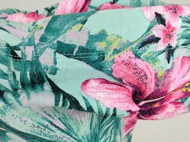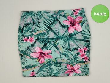 Spódnica mini FB Sister - Krój: ołówkowy, elastyczny, dopasowany - Wzór: tropikalny – zielone liście palm i różowe kwiaty hibiskusa na turkusowym tle - Materiał (metka): 95% bawełna, 5% elastan – ...