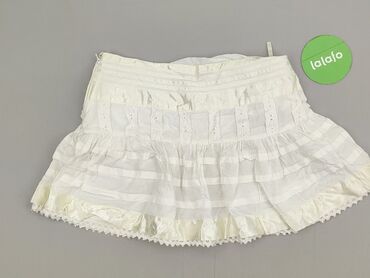 Biała spódniczka boho marki Fluid, rozmiar M. - Krój: mini, rozkloszowana. - Materiał: lekka, zwiewna tkanina z obfitymi, kaskadowymi falbanami. - Detale: szeroki pas z koronkową wstawką; na dole ...