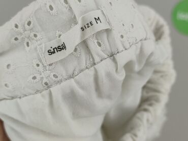 Biała spódnica Sinsay, rozmiar S. - Fason: rozkloszowana, z trzema falbanami - Detale: ażurowy haft-angielski na całej powierzchni, wykończenia z mini pomponikami na krawędziach falban - Talia: ela...