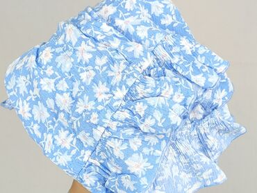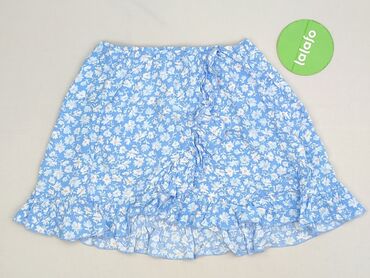 Spódnica damska mini z falbaną - Krój: krótka, rozkloszowana, z delikatną falbaną u dołu - Talia: elastyczna gumka - Wzór: niebiesko-białe, kwiatowo-kropkowane motywy w stylu boho - Materiał: lekk...