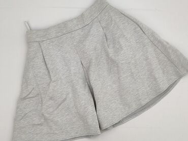 Szara spódnica mini z miękkiej dzianiny - Kolor: jasnoszary melanż - Fason: rozkloszowany/bombka z zakładkami z przodu i z tyłu, szeroki pasek w talii - Zapięcie: metalowy suwak z tyłu (złoty) - M...Stan: