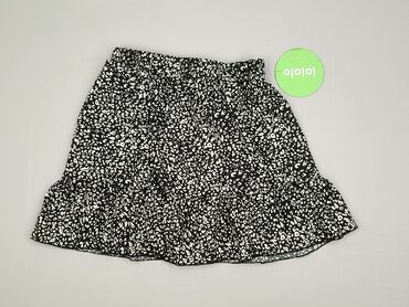 Czarna spódnica mini Sinsay, rozmiar S. - Wzór: drobne białe listki na czarnym tle. - Krój: rozkloszowana, z falbaną/asymetrycznym dołem dodającym lekkości. - Pas: elastyczny, komfortowo dopa...