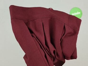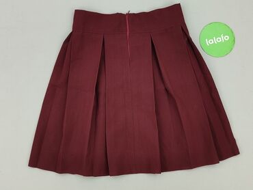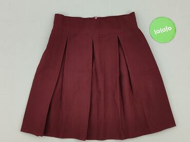 Bordowa spódnica damska XS - Fason: mini, z zakładkami po prawej stronie i asymetrycznym przodem - Zapięcie/dekor: rząd kontrastowych guzików z przodu (na lewej części) - Talia: średnia, gładki pa...