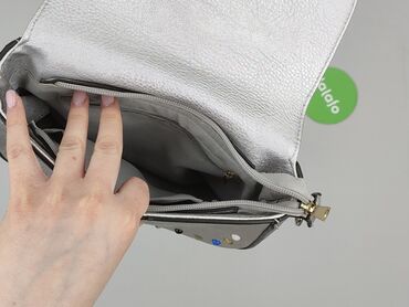 Damska torebka na ramię w odcieniu jasnoszarym/kremowym. - Materiał: skóra ekologiczna, klapa z matowym panelem o zamszowym wyglądzie - Zapięcie: klapa z paskiem i ozdobną złotą sprzączką - Pasek:...