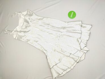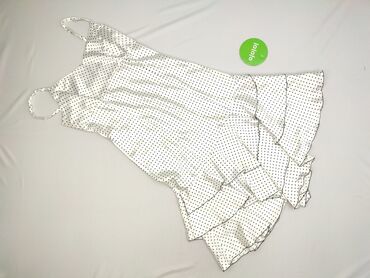 Biała sukienka bez rękawów w czarne, duże grochy - Fason: luźny, lekko rozkloszowany, swobodnie opływający sylwetkę - Dekolt: w kształcie litery V z delikatną kokardką/sznureczkiem do zawiązania -...