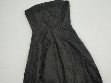 Sukienka damska CUBUS, rozmiar S. - Krój: dopasowana góra, rozkloszowany dół do połowy uda. - Wzór: czarne tło w różowe róże z zielonymi liśćmi. - Góra: czarna, ażurowa koronka z krótkim rękawkiem...