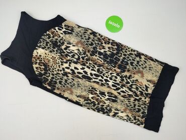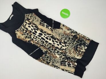 Sukienka damska w panterkę, rozm. M - Fason: dopasowany u góry, rozkloszowany dół z falbaną - Rękawki: krótkie, z efektowną falbanką - Dekolt: okrągły - Materiał: 100% poliester (metka na zdjęciu)...