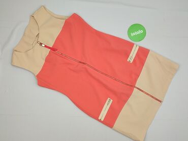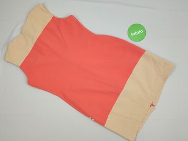 Sukienka damska bez rękawów w stylu color-block. - Kolory: ecru/krem i rdzawy pomarańcz - Krój: dopasowany, długość za kolano (midi) - Dekolt kopertowy/asymetryczny z jedną szeroką szelką -...Stan: