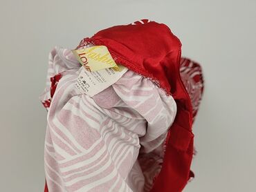 - Wzór: geometryczne, faliste linie w bieli na czerwonym tle