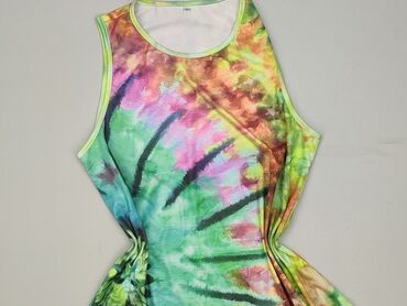 Sukienka bez rękawów w stylu tie‑dye - Fason: luźny, z zaokrąglonym dołem, długość midi/maxi (w zależności od wzrostu), szerokie ramiączka, okrągły dekolt - Wzór/kolor: intensywne, multikolorowe t...Stan:
