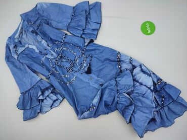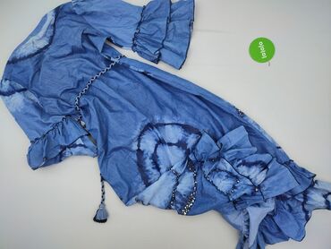 Sukienka damska boho z denimu/chambray, w odcieniach jasnego błękitu z efektem tie-dye. - Fason: długi (maxi) z rozkloszowanym dołem i falbaną u dołu oraz na rękawach - Rękawy: 3/4 z szeroką, mars...