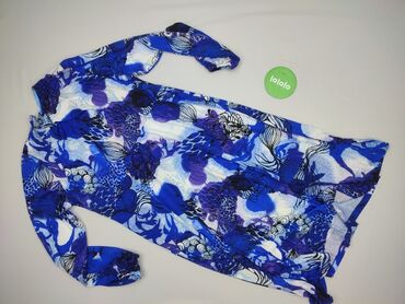 Sukienka damska w kwiaty - Kolor: jasny błękit z kwiatowym wzorem (róże w odcieniach różu, bieli i zieleni) - Krój: lekko rozszerzany ku dołowi, długość przed kolano - Rękaw: 3/4 - Dekolt: okrągły...