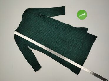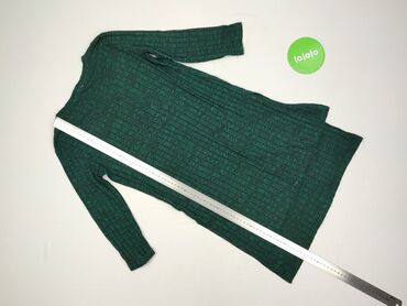 Sukienka dzianinowa Sinsay - Rozmiar: M (z metki) - Fason: dopasowany, mini - Rękaw: 1/2 (do łokcia) - Dekolt: półgolf - Wzór: poziome paski w odcieniach bieli na zgaszonej zieleni - Materiał: prą...