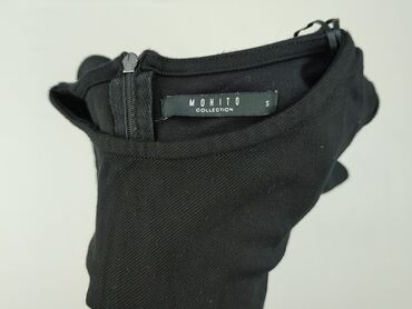 Czarna sukienka MOHITO Collection, rozmiar S. - Krój prosty, lekko dopasowany. - Rękaw 3/4. - Okrągły dekolt. - Zapięcie z tyłu na mały guziczek. - Dół wykończony efektowną, plisowaną falbaną z ma...