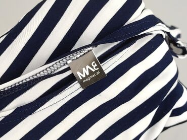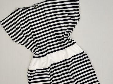 Sukienka dzianinowa MAGAT (Małgorzata Lewandowska), rozmiar 44. - Fason: prosta, długość midi/przed kolano, okrągły dekolt. - Rękawy: długie. - Wzór: góra w pionowe czarno-białe paski, przechodząc...